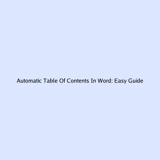 Automatic Table Of Contents In Word: Easy Guide