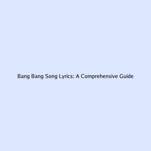 Bang Bang Song Lyrics: A Comprehensive Guide