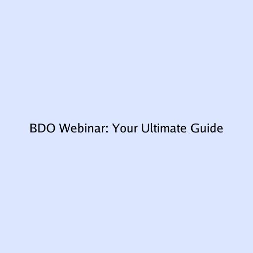 BDO Webinar: Your Ultimate Guide