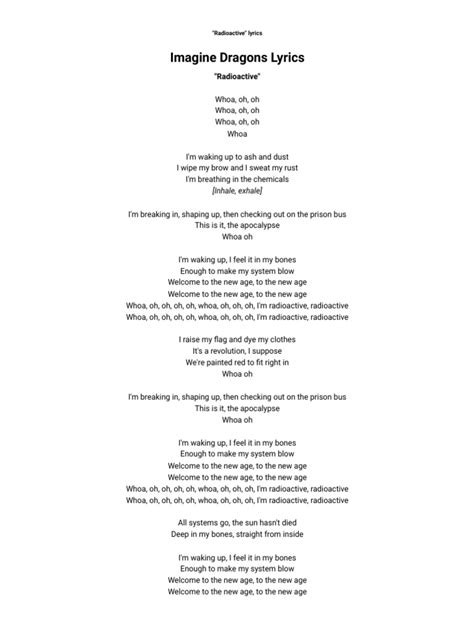 Beyond the surface, “Radioactive” is packed with symbolism. The term “radioactive” itself is pretty powerful. It’s not just about literal radiation; it’s a metaphor for feeling damaged, corrupted, or changed in a fundamental way. It represents the internal struggles and the scars we carry. Think about how the words are used. The singer isn’t just saying they’re feeling down; they’re comparing themselves to something that’s potentially destructive, something that’s emitting something dangerous. It’s intense, right? It really nails how a person can feel when they’re going through a rough time. The feeling of being “radioactive” captures the sense of being permanently altered, marked by experiences that leave lasting effects. This metaphor allows the listener to empathize with the depth of the emotions. The song’s ability to use such a strong symbol connects with anyone who has gone through periods of great hardship or change. Also, the song’s verses often depict a sense of being trapped, both physically and emotionally. The use of phrases evokes a sense of confinement. This speaks to the feeling of being stuck in a dark place and wanting to escape. It’s like being in a cage, unable to break free from negative thoughts, habits, or circumstances. This part of the song really resonates with people. The use of these themes and symbols helps “Radioactive” resonate with listeners on a profound emotional level, making it a powerful anthem for anyone fighting their inner battles.