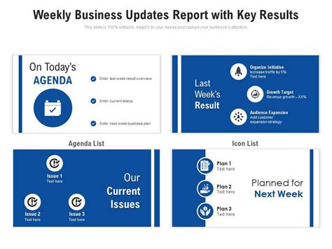 So, you’ve got all the crucial info for your business updates slide, but how do you actually present it so it sticks? Let’s talk best practices for presenting business updates . First and foremost, know your audience . Are you talking to the board, your team, or potential investors? Tailor the level of detail and the language you use accordingly. An investor might want deep financial dives, while your team might be more interested in operational wins and upcoming project impacts. Keep it concise and focused . Nobody likes a cluttered slide crammed with text. Use bullet points, strong headlines, and high-impact visuals. Each slide should convey a clear message. If you have a lot of data, break it down into multiple, focused slides rather than overwhelming your audience on one. Visuals are your best friend . Charts, graphs, infographics, and even relevant images can make complex data much more understandable and memorable. Ensure your visuals are clean, easy to read, and accurately represent the data. Avoid 3D charts or overly complex graphics that distract from the message. Tell a story . Your business updates aren’t just a list of facts; they’re a narrative of the company’s journey. Connect the dots between performance, challenges, and future plans. Explain the ‘why’ behind the numbers and actions. Be prepared for questions . Anticipate potential questions about the data, challenges, or future plans. Have backup slides or detailed information ready if needed. Practice your delivery . Rehearse your presentation to ensure a smooth flow, confident tone, and appropriate timing. Knowing your material inside out allows you to speak naturally and engage your audience effectively. Avoid simply reading from the slides; use them as prompts to guide your narrative. Finally, end with a clear call to action or next steps . What do you want the audience to do with this information? Is it to approve a budget, provide feedback, or simply be informed? Make it clear. By following these best practices, you’ll transform your business updates from a passive information dump into an engaging, insightful, and actionable session that truly moves the needle for your company. It’s all about clear communication, strategic storytelling, and audience engagement, guys!