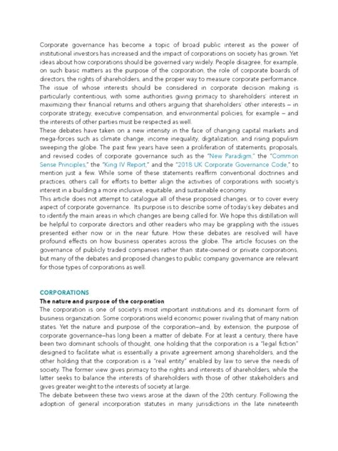 Corporate Governance: Key International Debates