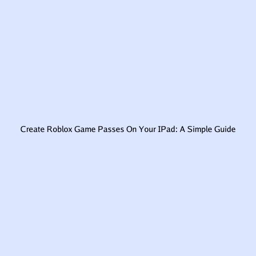 Create Roblox Game Passes on Your iPad: A Simple Guide
