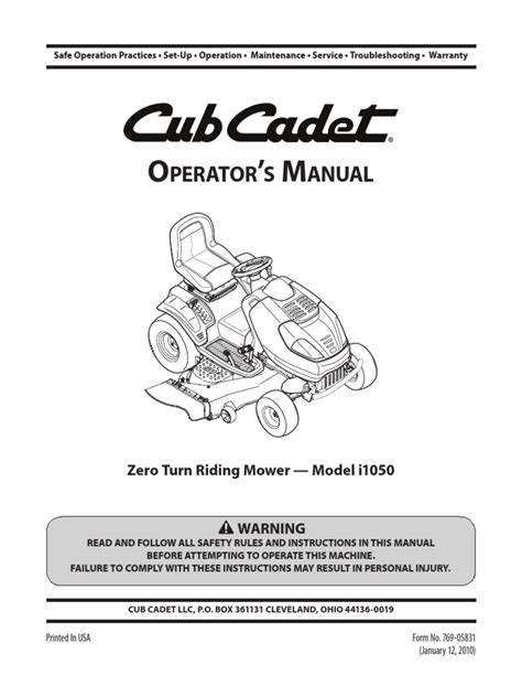 Cub Cadet I1050: Riding Mower Guide