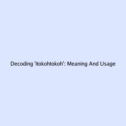 Decoding 'itokohtokoh': Meaning And Usage