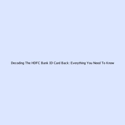 Decoding The HDFC Bank ID Card Back: Everything You Need To Know