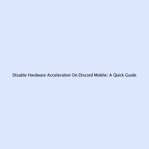 How to Disable Hardware Acceleration on Discord Mobile: A Quick Guide