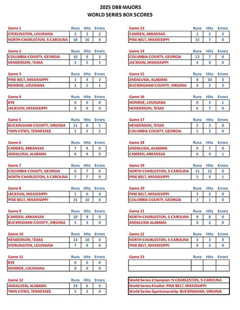 The tournament will likely kick off with preliminary rounds, where teams will compete in a round-robin format. Then, the top teams will advance to the elimination rounds, where every game will be a must-win situation. The excitement will build as teams fight to advance further, and the pressure will increase with each game. The final championship game will be the highlight of the tournament, with two teams battling it out for the title. The anticipation and excitement in the air will be palpable, as fans cheer on their favorite teams. So, mark your calendars and get ready for a week of unforgettable baseball action. The Dixie Majors World Series 2025 is sure to be an unforgettable event, and you won’t want to miss a single moment of the action. The tournament schedule is designed to keep you on the edge of your seat, with exciting matchups and nail-biting finishes. From the first pitch to the final out, you’ll be captivated by the skill, passion, and determination of the young athletes.