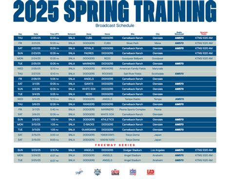 Hey baseball fanatics! Are you as stoked as I am for the upcoming Los Angeles Dodgers Spring Training in 2025? It’s that magical time of year when we get our first glimpse of the boys in blue, dust off our caps, and gear up for another exciting season. In this article, we’ll dive headfirst into the Dodgers Spring Training TV schedule for 2025 , so you won’t miss a single pitch, hit, or stolen base. We’ll also cover some key things to watch out for, the players to keep your eyes on, and where you can catch all the action. So grab your favorite snack, settle in, and let’s get ready for some baseball! It is going to be a fun journey, guys!