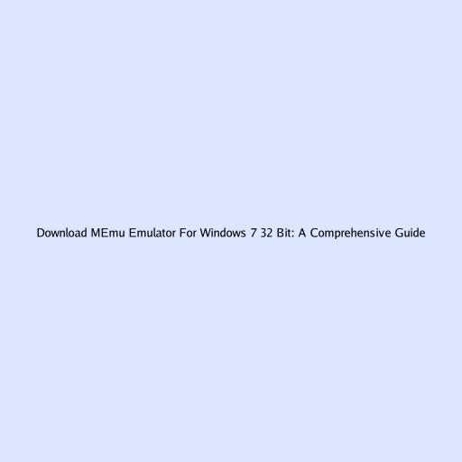Download MEmu Emulator for Windows 7 32 Bit: A Comprehensive Guide