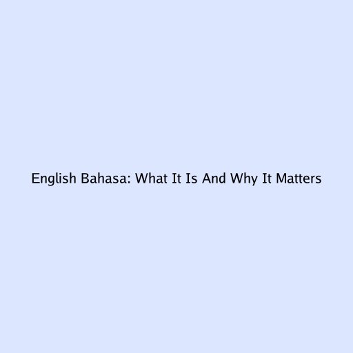 English Bahasa: What It Is and Why It Matters