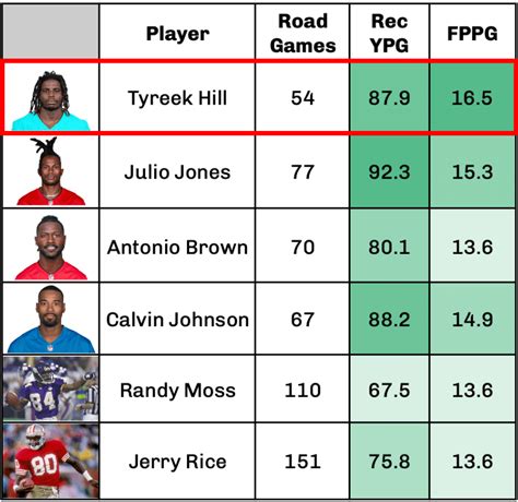 • Yards Per Reception (Y/R) for Wide Receivers and Tight Ends: This metric shows the average yardage gained per reception. It is a good indicator of a receiver’s big-play ability. High Y/R indicates a receiver can make explosive plays. Keep an eye out for receivers who can turn short passes into long gains.