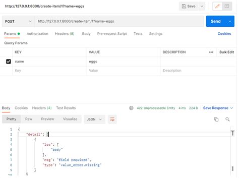 • Examine the Request Data: Compare the data being sent in the request to the expected structure in your Pydantic models. Use a tool like curl , Postman , or the browser’s developer tools to inspect the request body. Make sure all required fields are present and that the data types and formats match what your API expects. Pay close attention to any differences or mismatches between the request and the model.