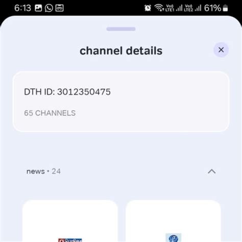 • Navigate to the ‘DTH’ section within the app. Here, you can manage your DTH account, view your subscription details, and find channel information.