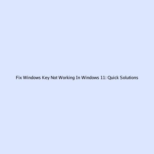 Fix Windows Key Not Working in Windows 11: Quick Solutions