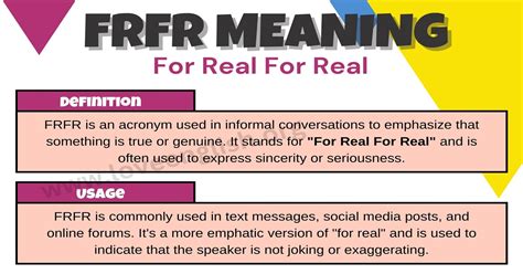 The inclusion of FRFR in pop culture not only demonstrates its popularity but also helps to normalize its use in everyday conversations. As more and more people become familiar with the term, it’s likely to continue to be used in various contexts, both online and offline.