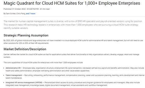 Alright folks, let’s dive into the Gartner HCM Magic Quadrant 2021 report. This is a big deal in the world of Human Capital Management (HCM) software, giving us a snapshot of who’s who and where they stand. For anyone trying to navigate the complex landscape of HR technology, understanding this report is crucial. It’s like a roadmap, helping businesses figure out which vendors are leading the pack and which are the ones to watch. We’ll be breaking down what it means to be a Leader, a Challenger, a Visionary, or a Niche Player, and how these distinctions can impact your organization’s strategic decisions when it comes to selecting an HCM solution. So grab your coffee, get comfy, and let’s unpack this essential piece of HR tech intelligence together. We’re going to explore the core criteria Gartner uses for their evaluation, giving you a clearer picture of the strengths and weaknesses of various HCM providers. This isn’t just about rankings; it’s about understanding the capabilities that truly matter for modern businesses looking to manage their most valuable asset: their people.