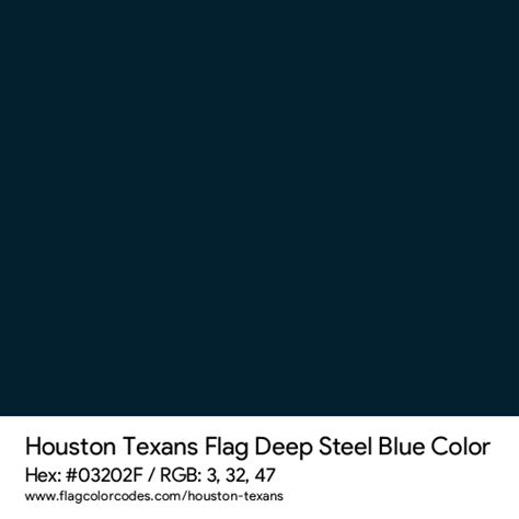 For digital use, like websites, social media, and on-screen graphics, we typically use Hexadecimal (Hex) and RGB (Red, Green, Blue) codes . The Hex code is a six-digit alphanumeric code that’s super common for web design, and it defines colors by combining varying intensities of red, green, and blue light. For the Houston Texans’ Deep Steel Blue , the official Hex code is #03223A . Pretty specific, right? Now, let’s look at the RGB values, which represent the intensity of red, green, and blue light from 0 to 255. The RGB equivalent for this striking blue is R: 3, G: 34, B: 58 . These numbers ensure that when you see the Texans’ blue on your screen, it’s the exact shade the team intends. It’s a really deep, almost charcoal blue, evoking strength and a serious, no-nonsense attitude, perfectly fitting for an NFL team. This meticulous attention to the Houston Texans blue color code is what maintains the integrity of their brand across all digital platforms.