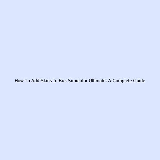 How To Add Skins In Bus Simulator Ultimate: A Complete Guide