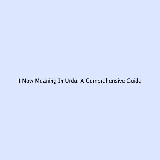 I Now Meaning In Urdu: A Comprehensive Guide