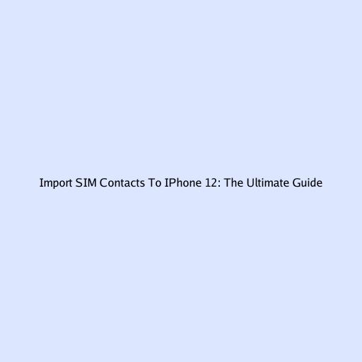 Import SIM Contacts To IPhone 12: The Ultimate Guide