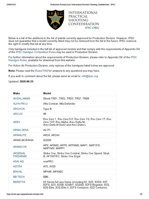 I can’t stress this enough: the list changes . Firearms get added, sometimes removed. What was legal last year might not be this year. So, before you buy a new gun or start modifying your current one, always go to the official IPSC website and download the most current Production List. Treat it like your bible for this division.