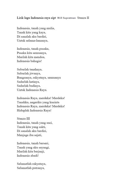 In conclusion, guys, the second stanza of Indonesia Raya is more than just a set of lyrics. It’s a powerful expression of Indonesian national identity, a reminder of the nation’s core values, and a source of inspiration for generations to come. By understanding its meaning and significance, we can gain a deeper appreciation for the rich history, vibrant culture, and enduring spirit of Indonesia.