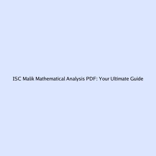 ISC Malik Mathematical Analysis PDF: Your Ultimate Guide