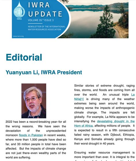 • Attend IWRA Events: Keep an eye out for IWRA conferences, workshops, and other events. These gatherings are a great opportunity to learn from experts, network with peers, and contribute to the global water dialogue. By following these tips, you can maximize the value of IWRA News Live and become a more informed and engaged member of the water community.*