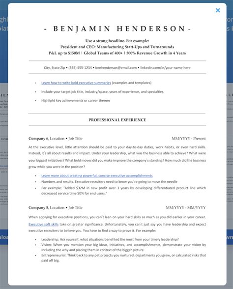 3. Fill in Your Information: Start filling in your information in the various sections of the resume, including your contact details, summary or objective, work experience, education, skills, and any additional sections like certifications or volunteer experience.