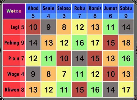 When we look at compatibility, we often consider the neptu value of each Weton. The neptu is a numerical value assigned to each day and the Javanese market day. For Rabu Wage, the neptu is calculated as follows: Rabu (7) + Wage (4) = 11 . So, your Weton’s number is 11. Now, different sources might have slightly different interpretations or preferred neptu combinations for strong compatibility, but generally, Wetons with neptu values that are close to yours, or that create a balanced sum when combined, tend to be a good fit. We’re often looking for sums around 7, 8, 16, 17, or 25 for strong connections, but remember, this is a guide, not a rigid rule!