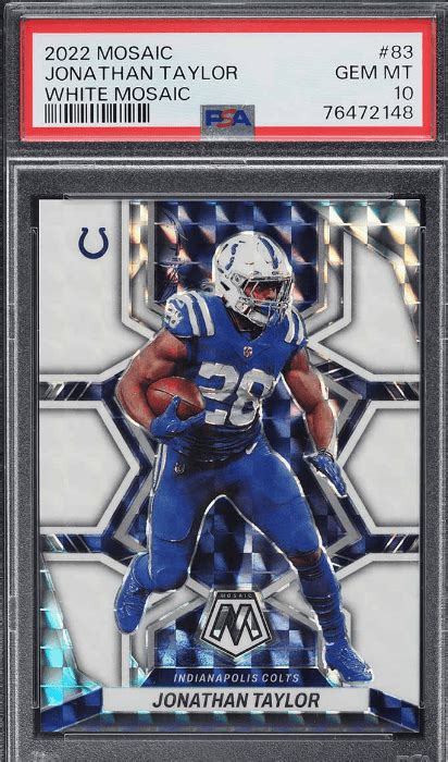 Mosaic : Mosaic cards have become increasingly popular, featuring a unique mosaic design. This set is known for its vibrant colors and various parallels. The Jonathan Taylor cards from Mosaic are a great addition to any collection. The rookies and rare parallels are the most sought-after, making it exciting for collectors.