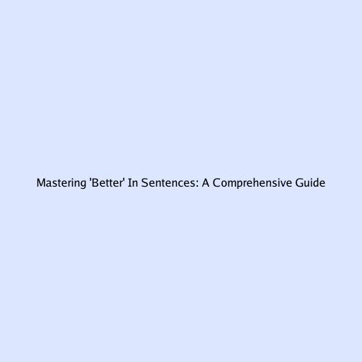 Mastering ‘Better’ in Sentences: A Comprehensive Guide