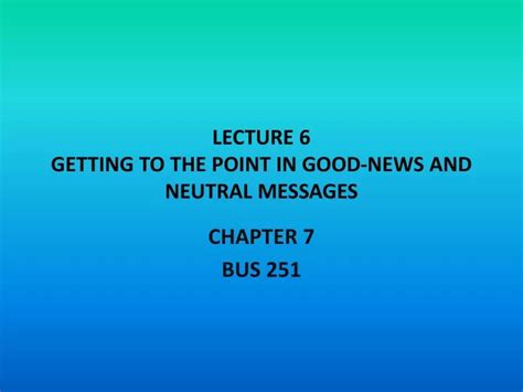 Mastering Good News: Express It in One Sentence