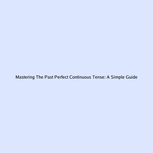Mastering the Past Perfect Continuous Tense: A Simple Guide