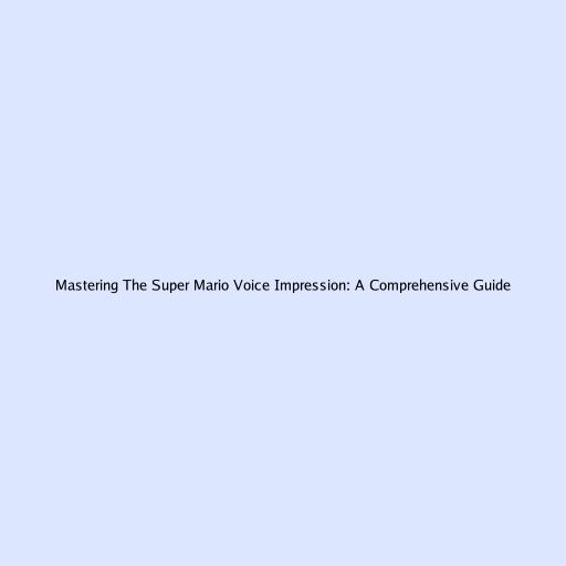 Mastering The Super Mario Voice Impression: A Comprehensive Guide