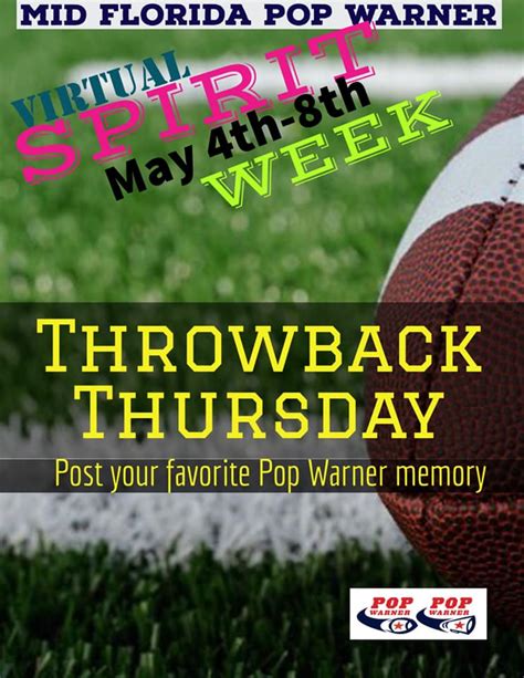 • Spread the Word: Tell your friends, neighbors, and other parents about Mid-Florida Pop Warner Football . The more kids who participate, the better! Encourage them to get involved and experience the fun and excitement of youth football and cheerleading.