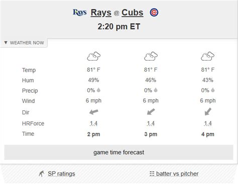 Game-Specific Data : Some advanced weather tools even provide game-specific data, such as the probability of rain during the game or the expected wind conditions. This can give you an edge when making decisions about your fantasy baseball lineup or even just enjoying the game more. This type of information is usually obtained by directly connecting the game data to the weather service. Some MLB teams have partnerships with weather services so they can have the best possible information.