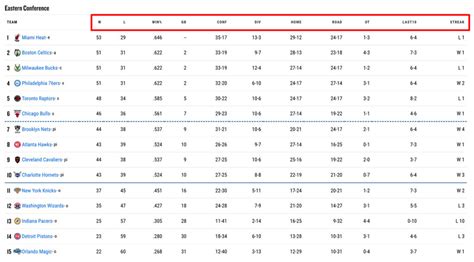 Let’s dive into the Eastern Conference! The Eastern Conference is a battleground of talent, with teams fighting tooth and nail for playoff spots. Right now, several teams are vying for the top seed, and the competition is fierce. Every game is a chance to climb the standings, and the energy is palpable.