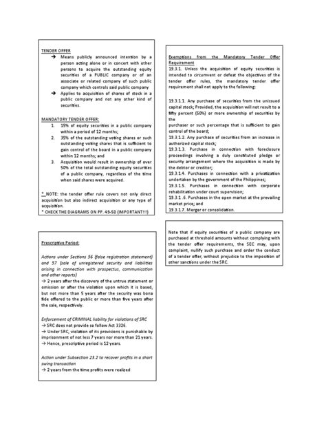 Key Terms and Concepts in a Tender Offer