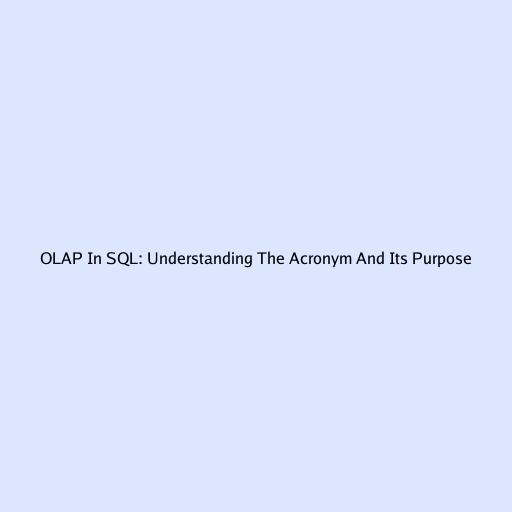 OLAP in SQL: Understanding the Acronym and Its Purpose