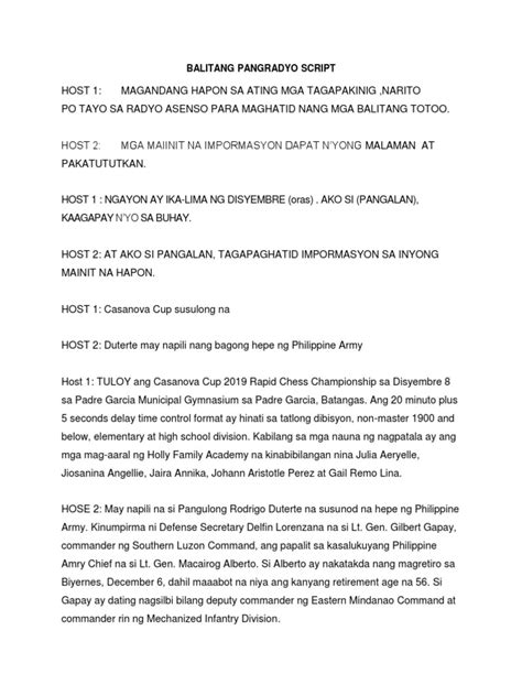 Pagbuo Ng Balitang Tagalog: Mga Halimbawang Script