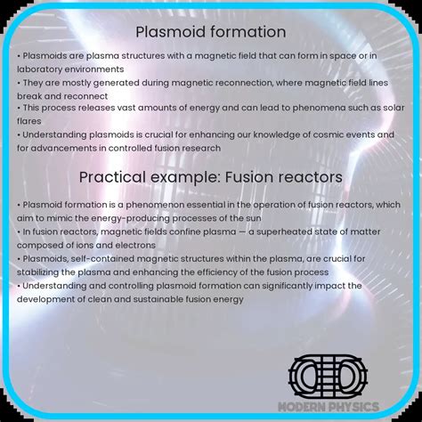 Furthermore, increased funding and support for plasmoid research are crucial for accelerating progress in this field. Governments, research institutions, and private companies should invest in research programs focused on understanding the fundamental properties of plasmoids, developing new technologies for creating and controlling them, and exploring their potential applications. This investment will not only advance our scientific knowledge but also create new economic opportunities and improve the quality of life for people around the world. Education and outreach are also essential for raising awareness about plasmoid energy and for inspiring the next generation of scientists and engineers to pursue careers in this field. By engaging the public and fostering a greater understanding of the potential benefits of plasmoid energy, we can create a more supportive environment for its development and deployment. The challenges are significant, but the potential rewards are even greater. With continued effort and collaboration, we can unlock the secrets of plasmoid energy and create a brighter future for all.
