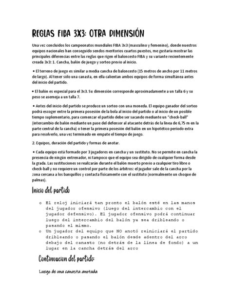 Reglas Claras Del Baloncesto 3x3
