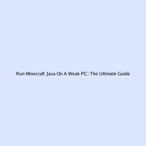 Run Minecraft Java on a Weak PC: The Ultimate Guide