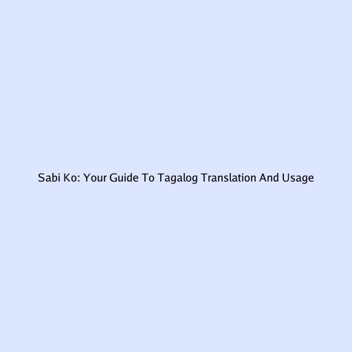 Sabi Ko: Your Guide to Tagalog Translation and Usage