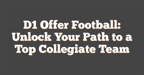 Hey football fanatics! Ever dreamed of playing college football at the D1 level? Well, you’re in the right place because getting those coveted D1 offers is a serious grind, but it’s totally achievable ! Think of this article as your playbook for navigating the recruiting process. We’re gonna break down everything you need to know, from the moment you lace up your cleats to signing that sweet, sweet scholarship.