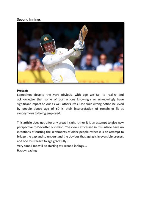 So, what exactly does “second innings” mean? At its core, the term refers to a new phase or opportunity in life after a significant change or turning point. The phrase is metaphorically borrowed from cricket, where an innings represents a team’s turn to bat. The “second innings” is their second chance to score runs and improve their position in the game. Similarly, in life, the second innings symbolizes a fresh start, a chance to learn from past experiences, and to pursue new goals or dreams with renewed vigor.