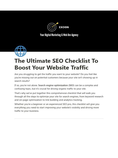 So there you have it, guys! A comprehensive SEO checklist to help you boost your website traffic and achieve your online goals. Remember, SEO takes time and effort, but the results are well worth it. Stay consistent, keep learning, and never stop optimizing! Good luck!
