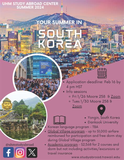 So, why should studying abroad in Korea be at the top of your list, guys? Well, let me break it down for you. First off, Korea is a global powerhouse when it comes to technology and innovation. Think Samsung, LG, Hyundai – these aren’t just brands; they represent a cutting-edge approach to business and tech that you can experience firsthand. Many Korean universities are at the forefront of research in fields like engineering, IT, and biotechnology, offering world-class education that can seriously boost your career prospects. Plus, the cultural immersion is second to none. You’ve probably seen it in the K-dramas and heard it in the K-Pop, but Korean culture is vibrant, dynamic, and deeply rooted in tradition. Imagine exploring ancient palaces in the morning and then hitting up a trendy cafe in Gangnam in the afternoon! The food scene is also legendary – from sizzling Korean BBQ to spicy kimchi jjigae, your taste buds are in for a treat. And let’s not forget about the safety. Korea is consistently ranked as one of the safest countries in the world, meaning you can explore with peace of mind. The public transportation system is incredibly efficient and affordable, making it super easy to get around cities like Seoul, Busan, and Daegu. This combination of academic excellence, rich culture, delicious food, and safety makes Korea an incredibly attractive destination for students worldwide. You’re not just getting an education; you’re gaining a unique life experience that will shape your perspective and provide you with skills and memories that last a lifetime. It’s a chance to step outside your comfort zone, learn a new language, meet people from all walks of life, and truly discover a part of the world that’s constantly evolving and setting global trends. Studying abroad in Korea offers a unique blend of modern sophistication and ancient traditions, making it an unparalleled destination for any adventurous student looking for an enriching academic and personal journey.